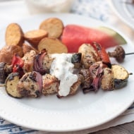 Grilled Greek Chicken Kabobs with Feta Dill Sauce
