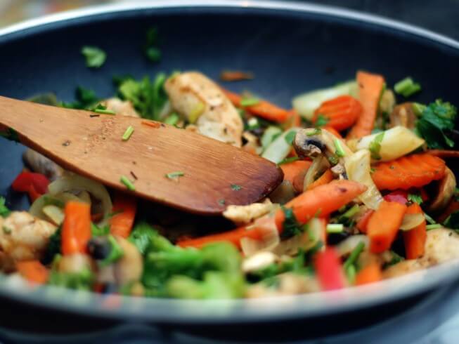 A wonderful way to come up with a new family favorite. Take any meat and vegetables you have in your fridge and start sauteing!