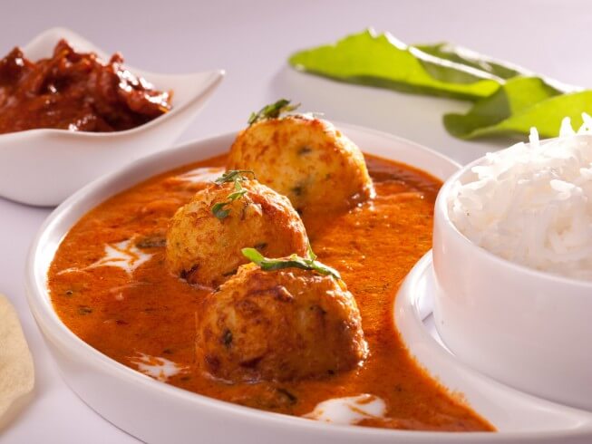 Potatoes and onions are cooked in a warm-spiced curry sauce, Kashmiri-style. It can be served with naan or roti, or served over rice.