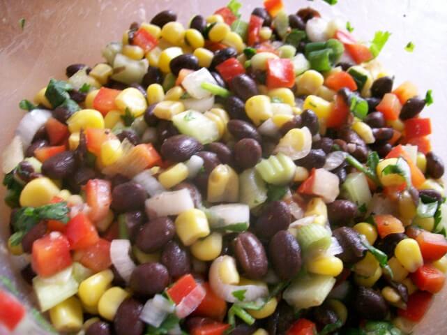 Always a hit at parties, this salsa is made with black beans, corn, bell pepper, cilantro, green onions, and a splash of balsamic vinegar and seasonings.