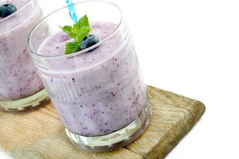 Berries and banana are blended up with yogurt and OJ for this refreshing snack. Pro tip: Freeze the bananas ahead of time and you can skip the ice!