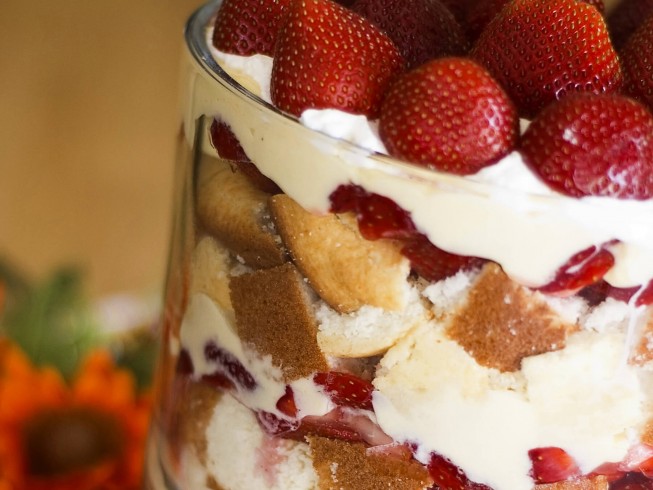 Glazed strawberries cover layers of fluffy whipped topping and airy angel food cake. Let it chill for a few hours before serving for best flavor.