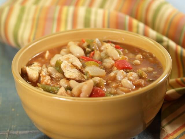 A simple, slow simmered chicken chili. The crock pot does a great job of melding the flavors. Adding salsa at the end gives it a spicy boost.