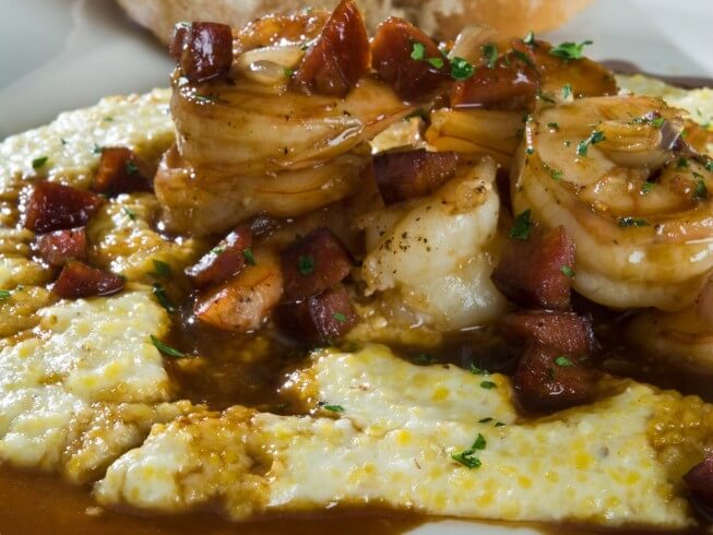 LOW COUNTRY SHRIMP AND GRITS WITH BACON GRAVY