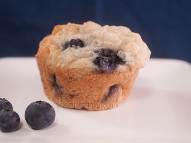 Bursting with blueberries, this low sugar muffin carries a hint of lemon flavor from the lemon yogurt in the batter.