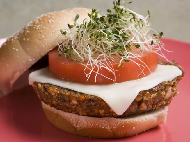 Bulgur, soaked oats and mushrooms help make this Gardenburger clone a hearty veggie patty. Brown them, bake them, then load them up with toppings!
